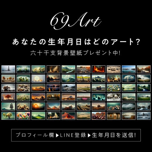 ご興味のある方は、ぜひ一度、宿命アートを体験してみてください。インスタグラムからLINEに飛んで、生年月日を送っていただくと、あなたの日干支のアートが届きます。