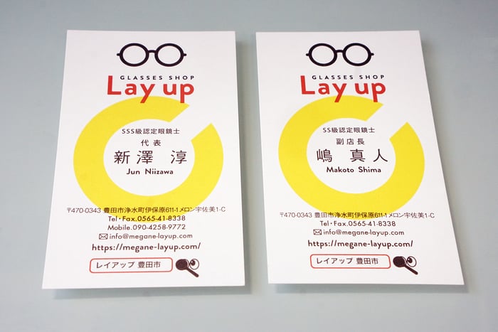 ホームページ制作も担当させていただいた、豊田市浄水町のメガネ屋レイアップさん。ホームページと同時進行で、名刺のデザインもさせていただきました。