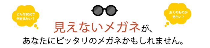 「見えないメガネって!?」と思ってもらえたら大成功。気になった方は、こちらのページをご覧になってくださいね。そして、「ひねくれ」というのは店主の好みで、「普通じゃないインパクトのあるのコピーにしてくれ」という無茶ぶりがあったので(笑)