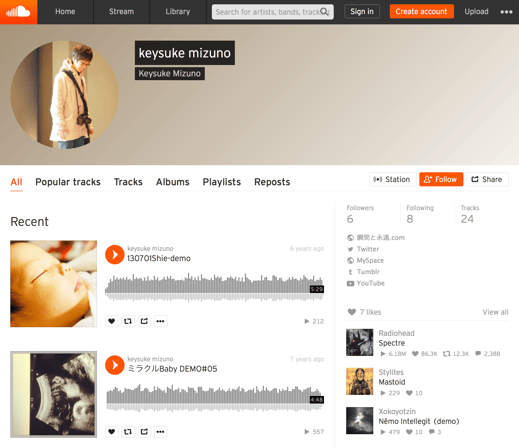 音をウェブ上にアップロードして、世の中のシェアすることができるSoundCloud。どうやら最初の投稿が「7 years ago」なので、2013年くらいでしょうか。何をアップしたかというと「朗読」。ほぼ日の「今日のダーリン」を音読してそれを録音してアップしたようです。