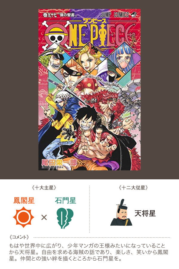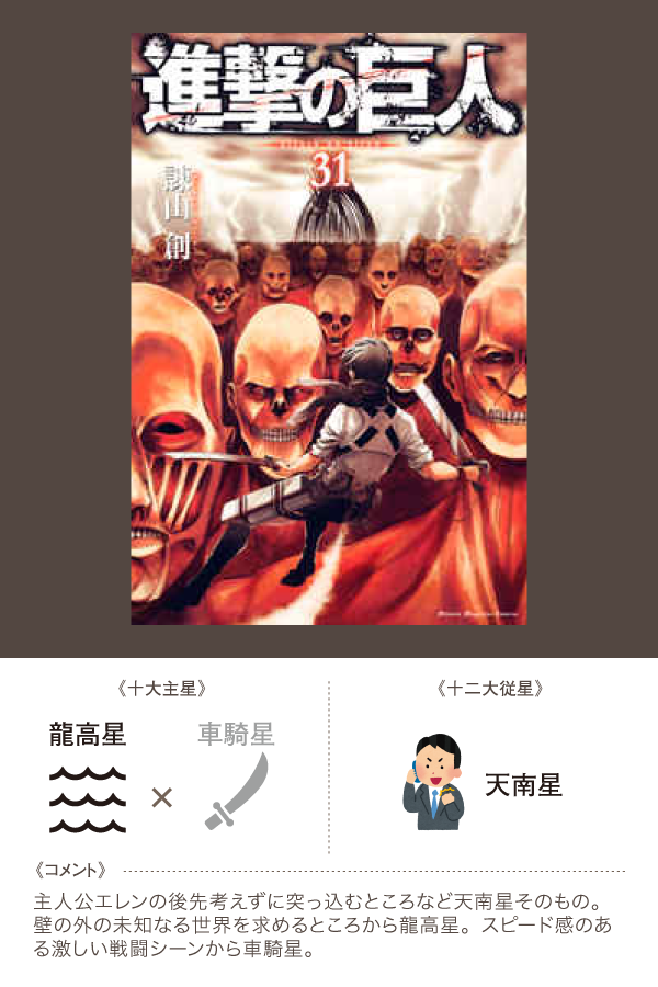 正解があるわけではないんですが、あれかな?これかな?と、頭の中で考えてみることの意味があるのかなと思います。あと、単純に楽しいんですよね、こういうのが。好きな漫画を思いながら、これまた好きな算命学のことをニヤニヤしながら考えているというわけです。