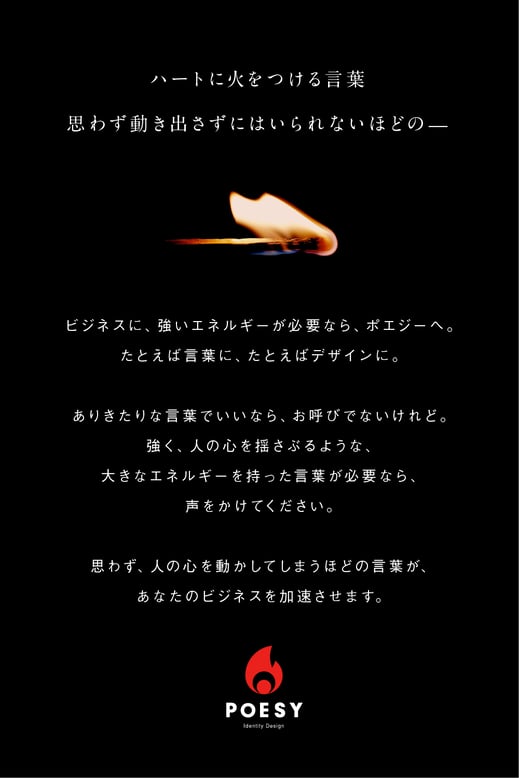 そう、そうなんです、ぼくのやりたいこと、ポエジーの役割って、これ!なんです。「ハートに火をつける言葉」をつくって、それでビジネスが加速すること。