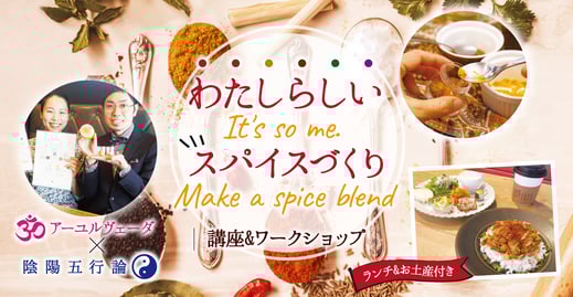 それと「わたしらしいスパイス」なんていう言葉をタイトルにつけましたが、陰陽五行論とアーユルヴェーダで自分の性質を知った上で、それを元にスパイスを調合する。だから、世界に一つのあなたにピッタリのスパイスなんですよ、ということを表現したのでした。