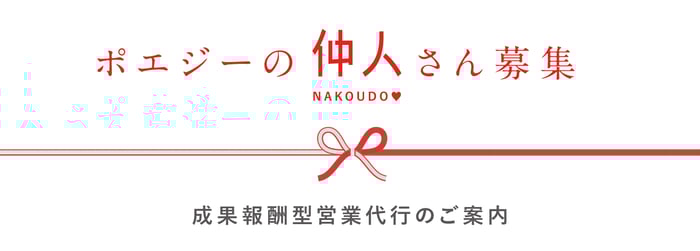 「ポエジーの仲人システム」は、ポエジーと、ポエジーのサービスを求める企業様の縁をつないだくださった方に、心ばかりのお礼を差し上げる仕組みです。
