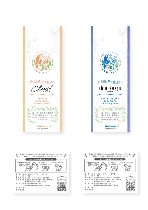 株式会社ストレートアライブ様からのご依頼で、新しく立ち上げるハーブブランド「SOW Herb(ソウハーブ)」のロゴマークとパッケージのデザインを担当させていただきました。ストレートアライブ様は、障がい者就労支援事業所を運営されており、自然栽培の野菜を「自然栽培とものわ」というブランド名で展開されています。今回は、「とものわ」とは別に、イメージの異なるハーブブランドを立ち上げたいというご要望でした。